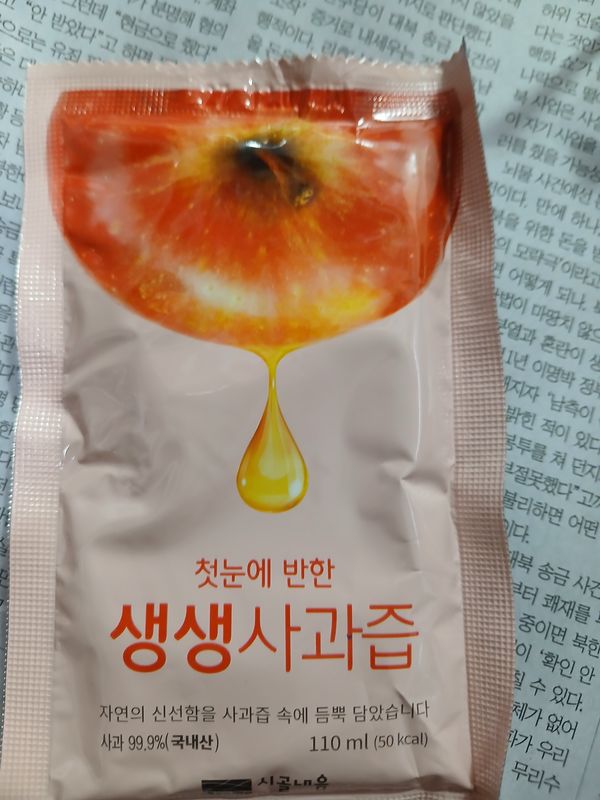 색깔, 맛 모두 찐 사과즙이네요. 단맛은 좀 약함.