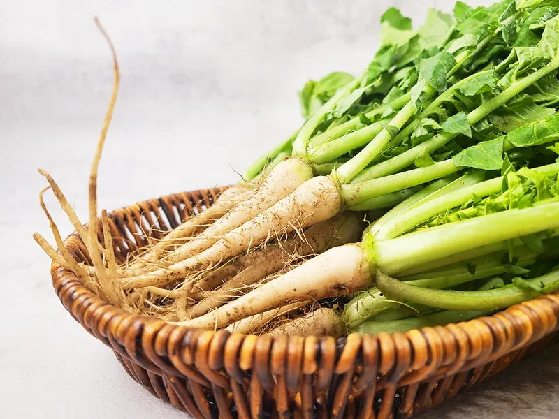 열무에서 가장 중요한 건 바로 부드러움이죠. 반으로 갈랐을 때 톡! 부러져야 질기지 않고 맛있는 열무라고 할 수 있어요. 비옥한 땅에서 자라 더 신선한 어린 열무입니다.