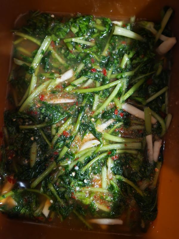 비닐하우스에서 집에 하는지 아주 아삭하고 부드럽네요. 열무김치가 맛있게 됐어요