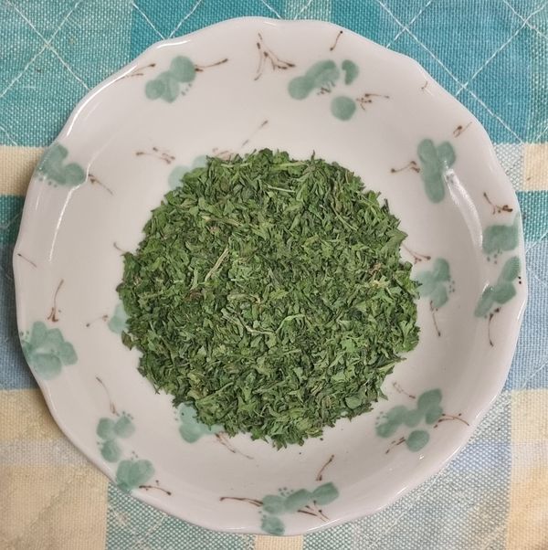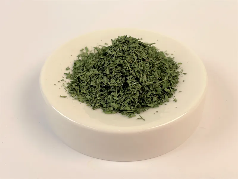 잘 말린 파슬리를 곱게 다져 만든 파슬리 가루입니다.