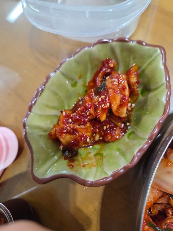매콤하면서 꼬들꼬들 맛있네요.조금 아쉬운 점이 있다면 양념장국물이 조금더 있더라면^^다음주문때는 양념국물을 조금더 주셨으면 합니다.맛있습니다.
