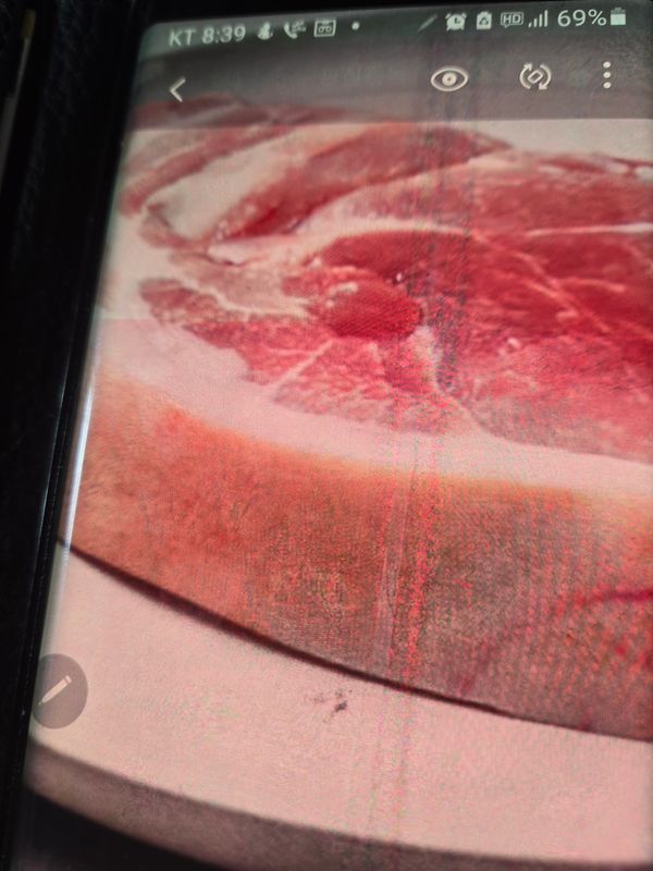 큼직하게 썰어서 김치찌개에 넣어 먹었습니다. 비계부분이 쫄깃하니 맛있네요. 처음엔 살짝 냄새가 나는듯 했으나 끓으면서 냄새가 많이 약해져서 먹을 때는 전혀 느끼지 못했습니다