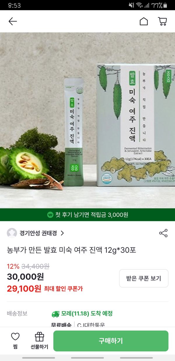 쓴맛도 안나고 먹기에 좋네요 건강에 좋다고 하니 다 먹고 재주문해야겠어요
