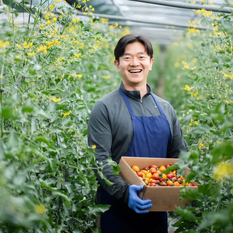 안녕하세요. 강원도 춘천에서 토마토를 재배하고 있는 이규호입니다. 가족이 함께 운영하고 있는 농장으로 2대째 가업을 이어가고 있습니다. 약 5,000평 규모의 시설에서 30년 넘게 토마토 농업이라는 한 분야만 고집해 더 나은 농산물과 더 나은 먹거리를 위해 다방면으로 연구하고 있습니다.