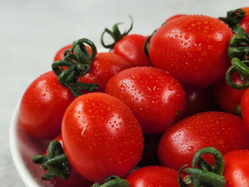 방울토마토에는 항산화 물질이 풍부하게 들어 있어 노화를 예방하고 각종 질병을 막아줘요. 피부 건강에도 도움을 준답니다.