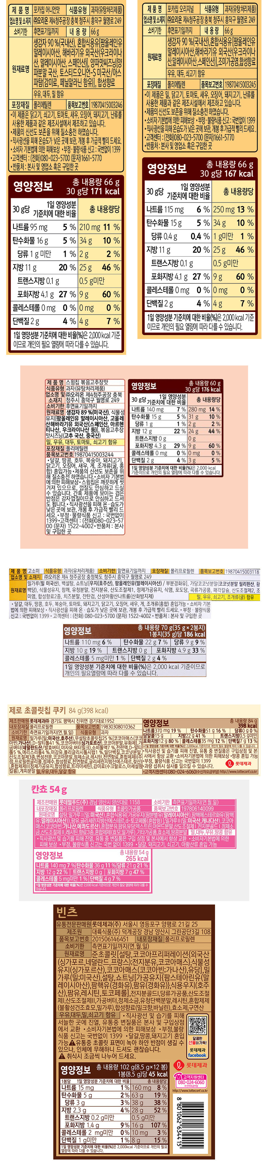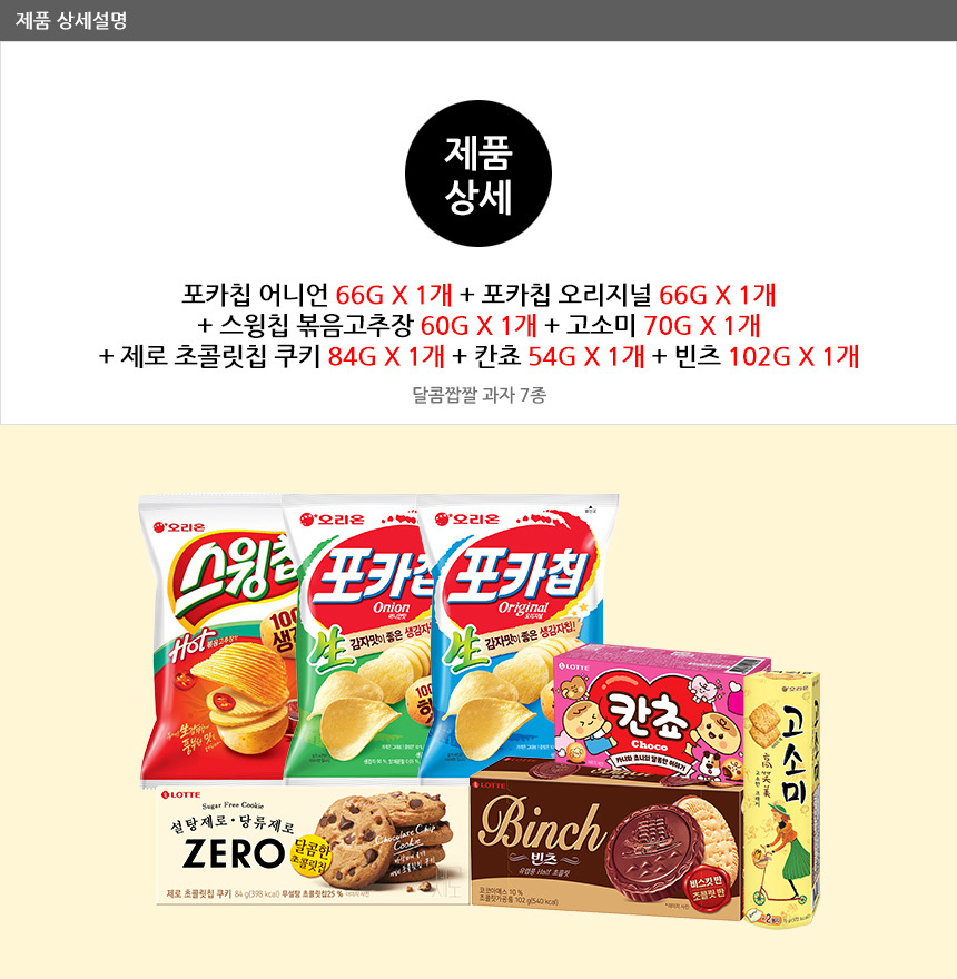 달달짭짤 과자 7종 (포카칩,스윙칩,칸쵸 등)