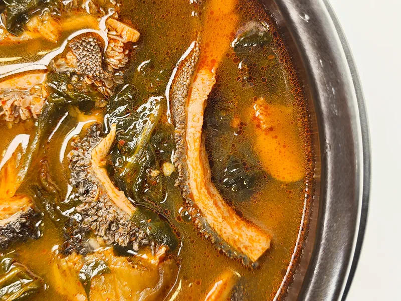 국내산 우거지와 한우 양이 가득 들어있어 한 끼 든든하게 드실 수 있어요. 우거지와 양을 국물과 함께 한입 먹으면 이만한 별미도 없답니다. 별다른 반찬 없이도 밥 한 공기 뚝딱 비우실 수 있을 거예요 :)