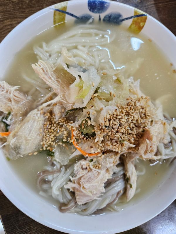 국물도 좋지만 비빔이 맛있어요. 고명 닭고기가 별로임.