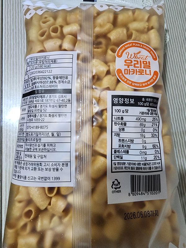 옵션: 우리 밀 마카로니 과자 120G*8봉