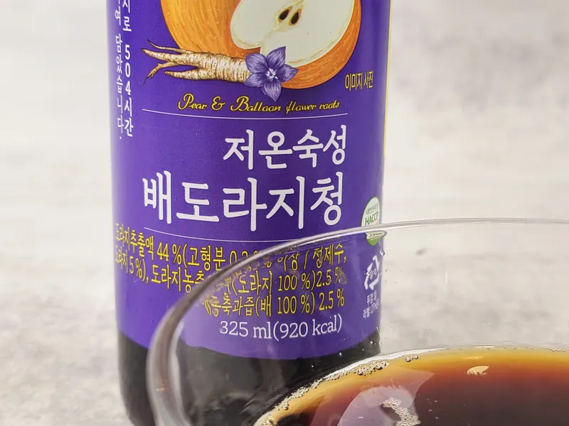 국산 도라지를 통째로 갈아 추출하여 얻은 농축액과 배 농축과즙이 조화롭게 만났어요! 진하게 추출한 덕분에 더욱 깊은 풍미를 느껴볼 수 있답니다. 더욱 풍부해진 맛과 향의 배도라지청을 직접 경험해 보세요 :)