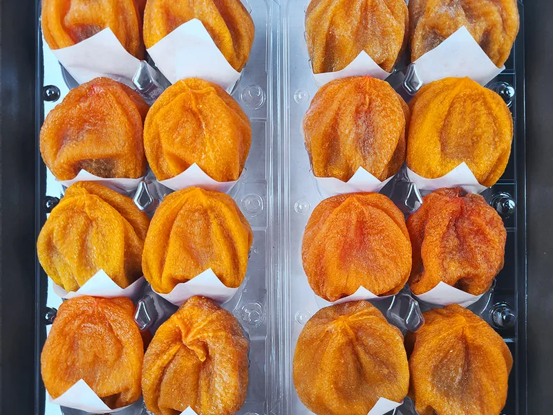 겉은 쪽득하고 속은 부드러운 식감을 자랑하는 반건시 둥시 곶감입니다. 입안에서 사르르 녹는 달콤함에 아이들 영양 간식으로도 최고죠.