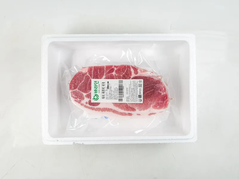 가운데 두툼한 지방은 과감하게 손질하여 빠진 무게만큼 살코기로 채워 넣었어요! 목살의 특징인 담백한 맛과 적절한 비계의 조화로 쫄깃한 식감이 필요한 제육, 불고기와 같은 요리에 금상첨화죠.