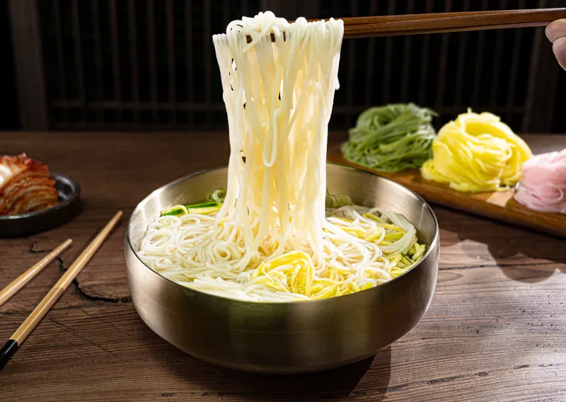 반죽의 공기를 빼는 진공 숙성 방식으로 가공해 삶은 후에도 퍼짐이 덜하고 뜨거운 육수에 넣어도 쫄깃한 식감을 그대로 유지합니다.