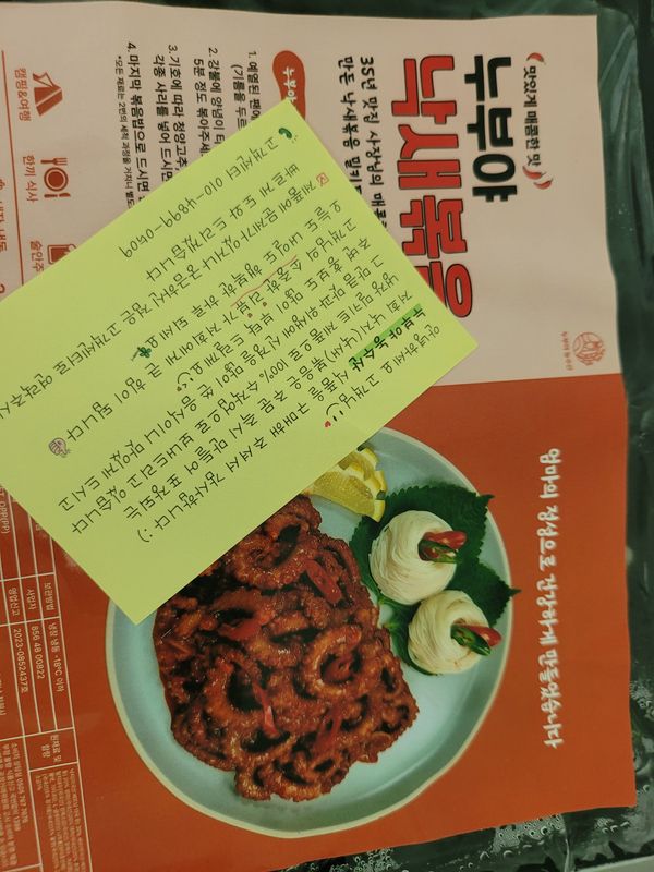 포장은 좋았으나 내용물은 아쉽네요. 낙새볶음이라기 보다 양파볶음이 어울리는 ㅋ 양념 다 넣으라기에 생각없이 넣었다가 고춧가루에 버무린 양파볶음 먹은 기분ㅜㅜ