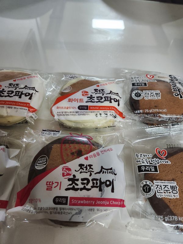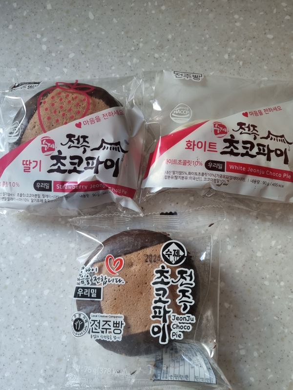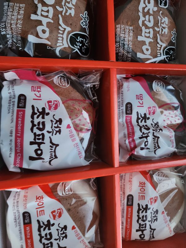 전에 다른 전주초코파이 시켜먹었던 것과 비교하니 조금단맛이 있어요 애기들은 맛있다고 잘먹네요