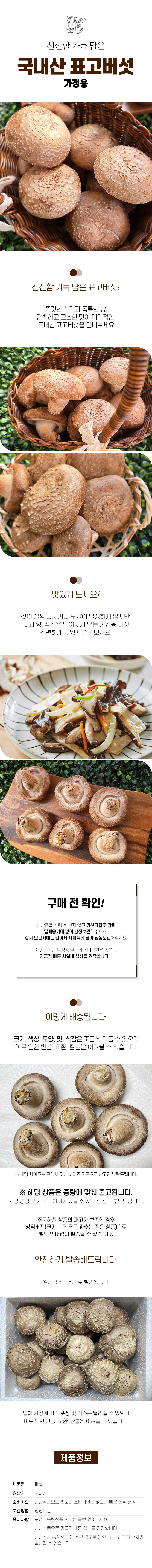국산 표고버섯 1kg 가정용 혼합