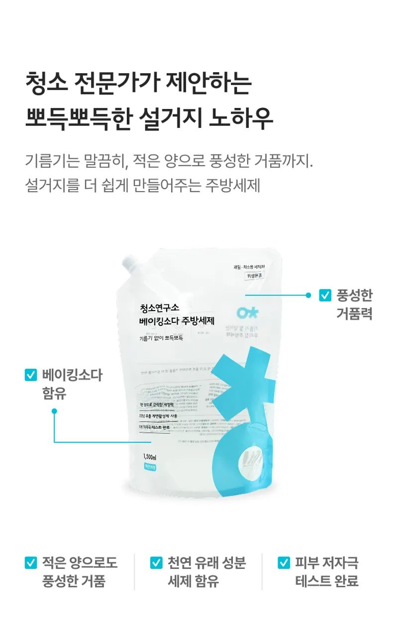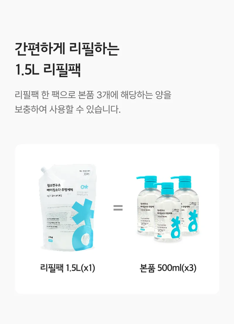 옵션: 청소연구소 베이킹소다 주방세제 리필 1.5L * 2개