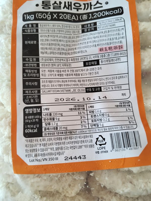 옵션: 새우까스 1kg