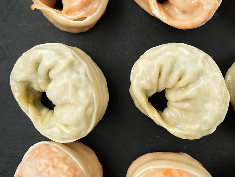 만두 하나에 새우 한 마리가 들어있는 꽉 찬 만두예요. 시중에서 쉽게 찾아보기 어려운 상품이랍니다. 고급스러운 맛 한 번 즐겨보세요