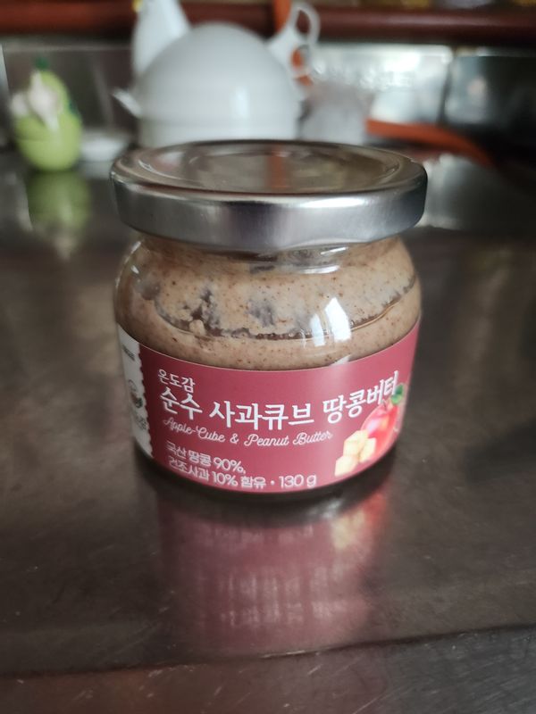 사과맛은 전혀 안나는 사과큐브땅콩잼 말린사과이기 때문일까요? 그냥 갈지않은 땅콩 씹는느낌 기대가 너무컸나봐요