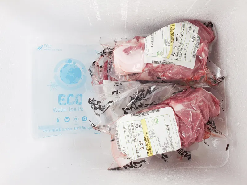 제품은 냉장 상태로 고기를 진공 포장하여 아이스박스에 아이스팩과 함께 동봉해 보내드립니다.