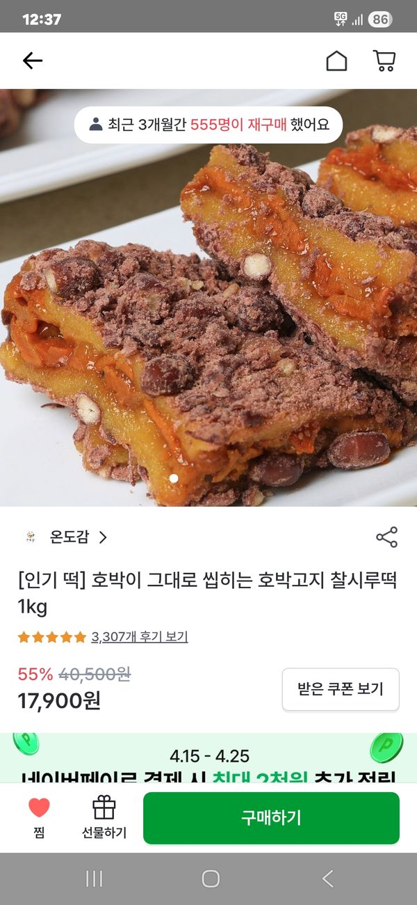 맛있어요 기대이상입니다. 상온에 잠깐 꺼내어두면 데우지않아도 맛있습니다. 부드러워 먹기도 편해요. 워낙 좋아하는 떡이라 다먹으면 또 주문할것같네요.