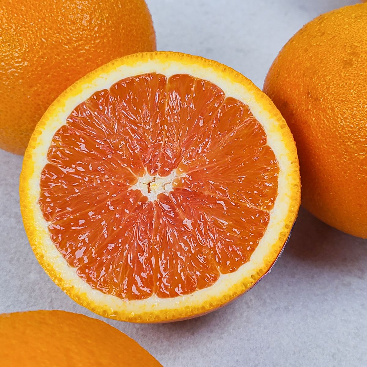 카라카라 오렌지는 과즙이 많고 부드러울 뿐만 아니라 일반 오렌지보다 신맛은 적고 깊은 달콤함을 자랑해요. 겉은 오렌지, 하지만 잘라보면 자몽과 같은 붉은 빛의 과육이 특징입니다.