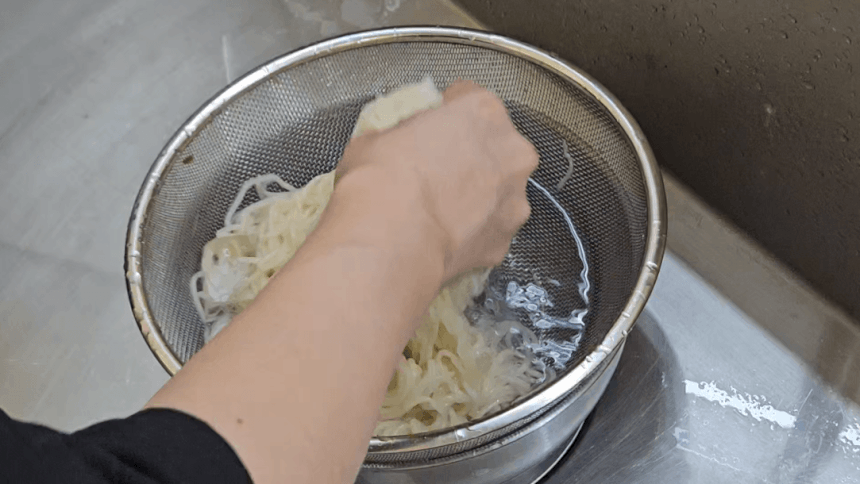 특허받은 반죽기로 만들어 더욱 쫄깃한 식감을 자랑해요. 한 젓가락 먹을 때마다 탱글탱글한 식감이 가득 느껴져요! 오랜 연구 끝에 찾아낸 최적의 반죽 시간으로 면발을 만들어요.