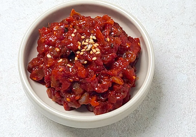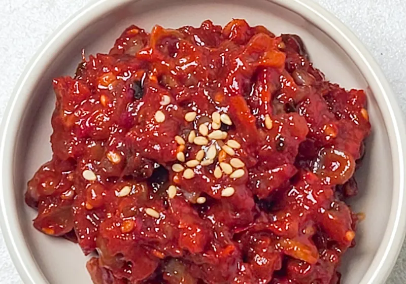 매콤하고 짭짤한 맛이 일품인 비빔낙지젓은 깊고 진한 풍미로 입안에서 감칠맛을 가득 채워줍니다. 신선한 낙지의 깔끔한 맛과 양념의 조화가 완벽해 자꾸만 손이 가는 맛있는 반찬이에요.