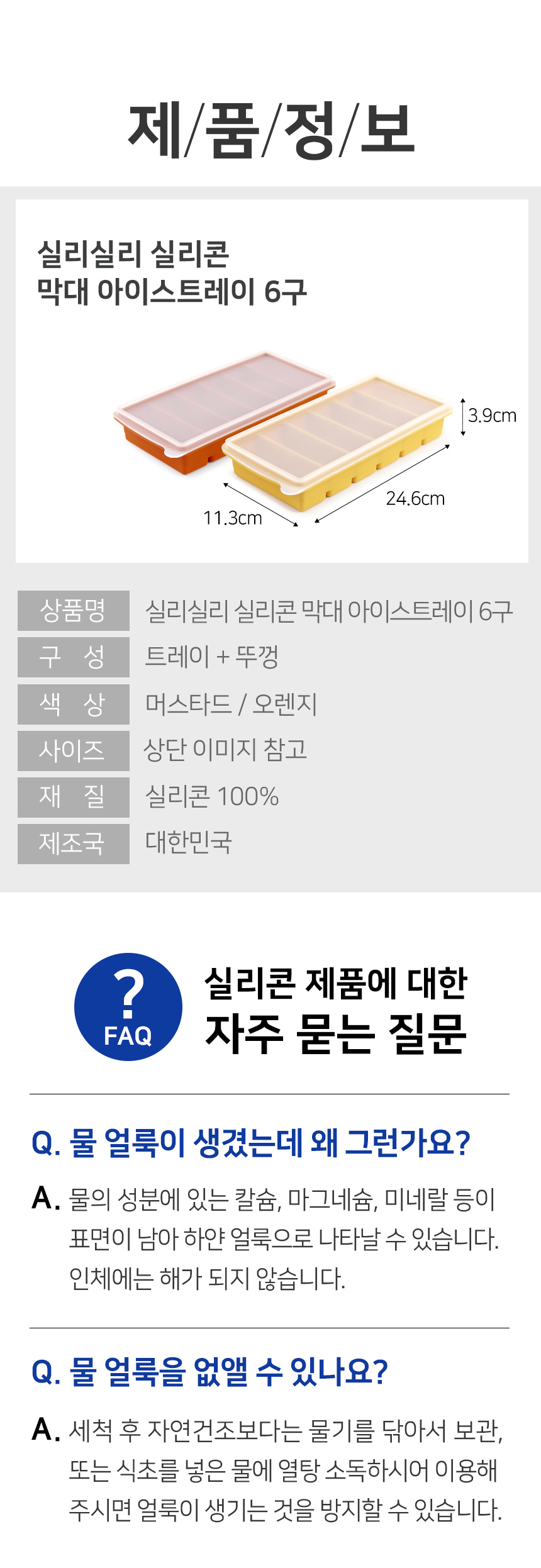 입구 좁은 텀블러에도 쏙 국산 실리콘 막대 얼음틀 6구