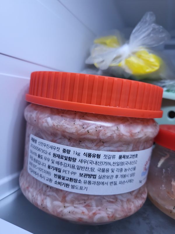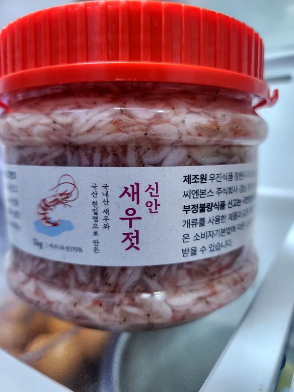 새우젓 색깔도 좋고 깨끗하고 짜지않아요 오자마자 참기름, 깨넣고 양념해서 족발 먹았어요. 아쉬운점은 포장한 스티로폼박스가 커서 새우젓통이 좀 돌아다녔는지 새우젓국물이 좀 흘렀네요.