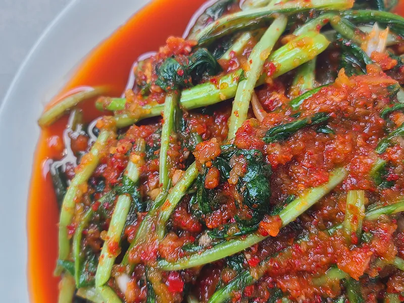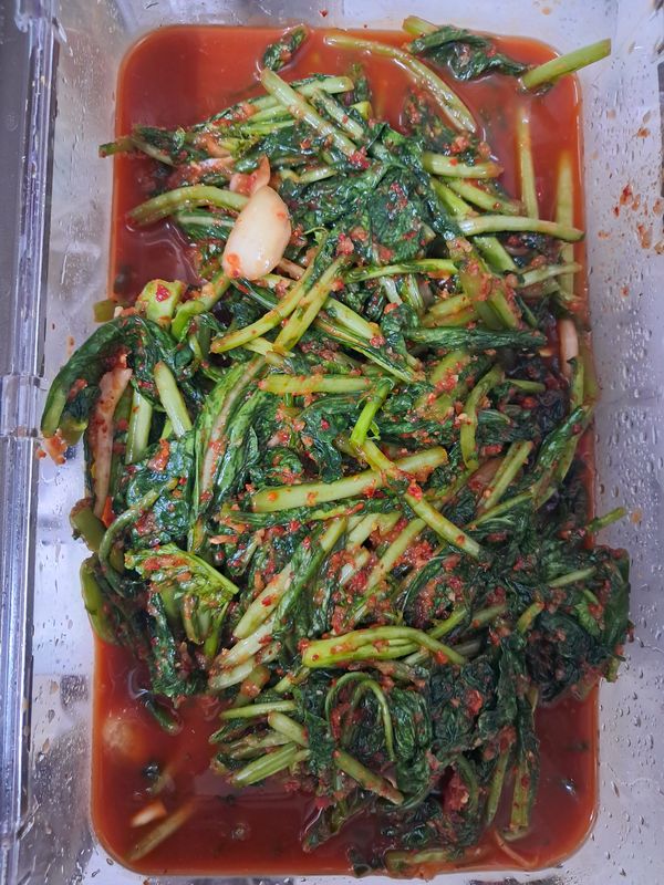 열무의 쌉싸름한 맛과 감칠맛 도는 매콤한 양념이 조화롭게 어우러졌어요. 특유의 톡 쏘는 맛으로 집 나간 입맛도 돌아오는 맛이죠. 뿌리 부분이 날씬한 어린 열무만을 엄선해 질기지 않고 아삭거리는 식감이 일품이에요.