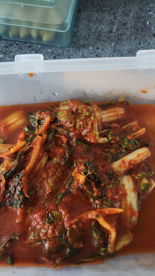 ㅣ맛은 진한데 국물이 자작한상태로 양념이배추랑 어우러지지안고 국물에 쓸려 김치국물이 양념 으로 번벅입니다 양념이 아깝지요 ?%