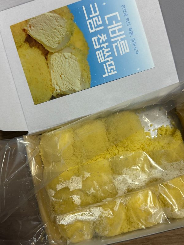 실온에 꺼내두면 겉부분이 말랑해지기전에 차가운 아이스크림이 미지근해져서 보완해야할듯.. 겉이 별로 쫀득해지지않아요