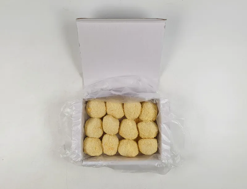 부드럽고 촉촉한 생크림 속에 톡톡 터지는 옥수수 알갱이까지! 겉은 노란 카스테라 가루로 감싸 더욱 부드럽고 고소해요. 정성껏 빚은 쫄깃한 떡 피에 고소함이 가득 담겨 있답니다.