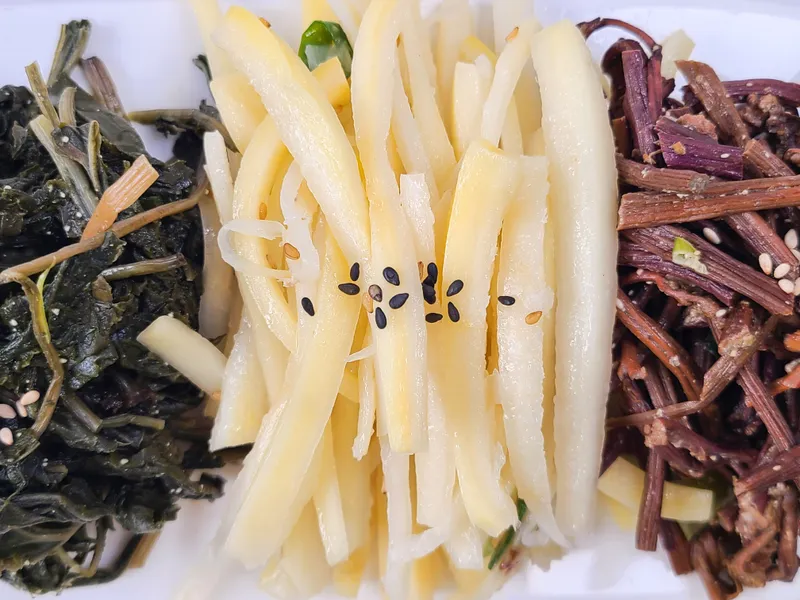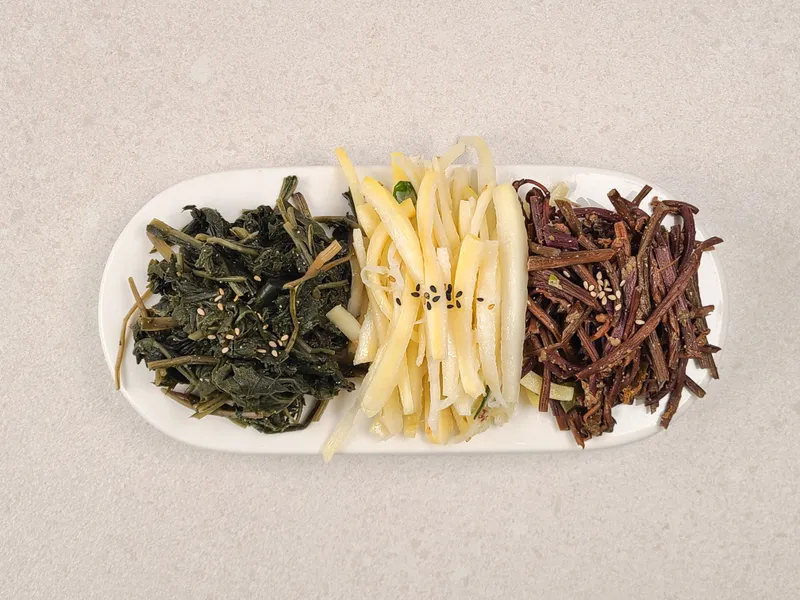 고사리의 쫄깃함, 도라지의 아삭함, 취나물의 구수한 향까지! 조화로운 세 가지 반찬입니다.
