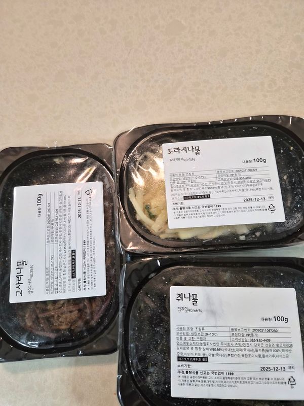 나물이 먹고 싶어서 주문했는데 의외로 맛있어서 좋았네요~~ 부드럽고 질기지 않아요 간도 짜지않고 적당하고 나물 각각의 향이 나서 더 조았어요 한끼로 먹기 아까워 한번은 밥과 또 한번은 고추장을 넣고 비빔밥으로 맛있게 먹었네요 ~~~