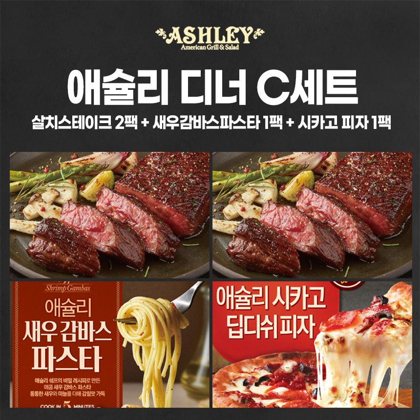 [애슐리] 디너 C세트 (살치스테이크2+새우감바스파스타1+시카고피자1)