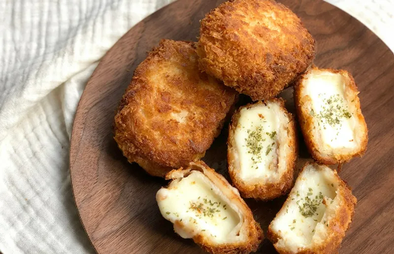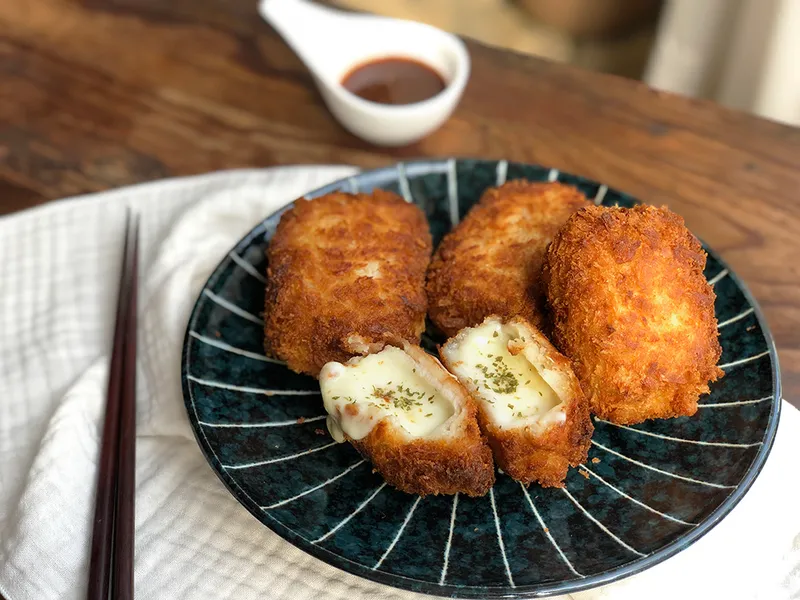 빠삭빠삭한 빵가루에 얇게 편 돼지고기 등심과 짭쪼롬한 치즈가 가득 들어간 치즈돈까스입니다. 한입 베어물면 등심의 풍부한 육즙과 쭉 늘어나는 고소한 치즈를 맛보실 수 있습니다! 고기보다 치즈가 많아 치즈 매니아에게 강력 추천해 드립니다.