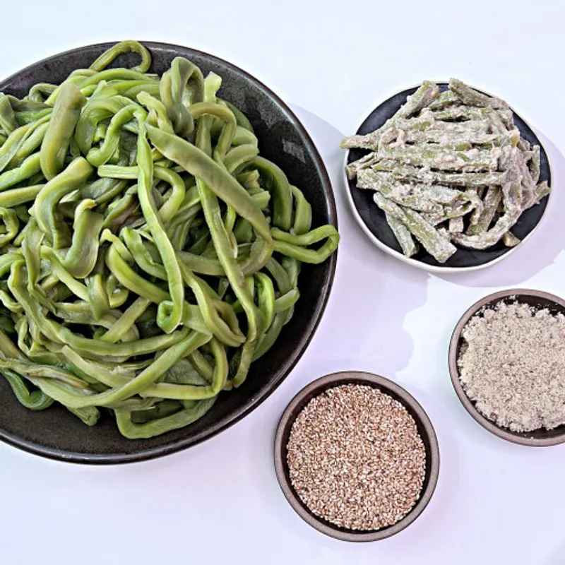 오독오독 씹는 식감 최고인 궁채로 만든 궁채들깨무침입니다. 들깨를 넣어 고소한 맛과 향이 풍부합니다.