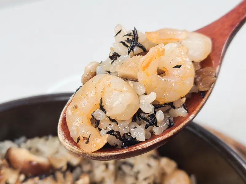 탱글탱글한 새우가 들어간 솥밥입니다.
