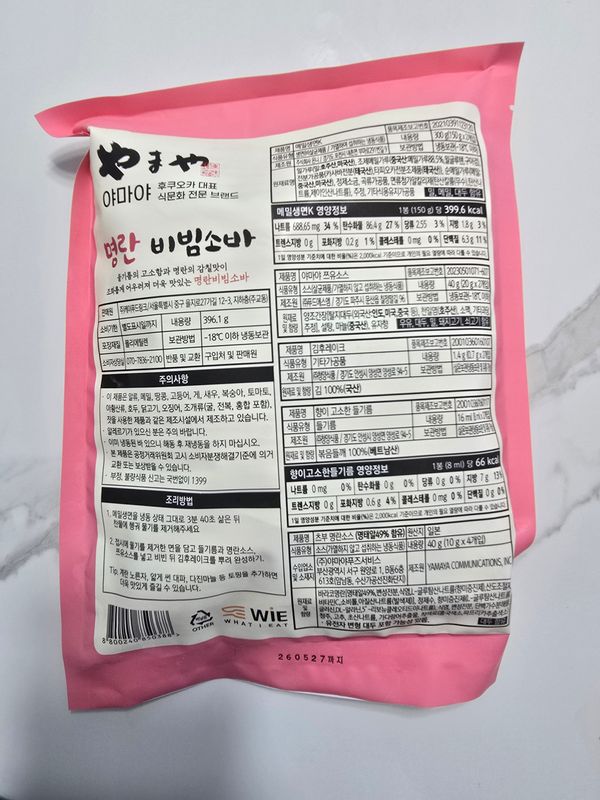 포장 꼼꼼하게 잘 왔구요, 면 삶아서 많이 헹궈야해요. 전분가루 때문에. 1인분 양 적당해요. 들기름향 좋고, 명란 짭짤하니 맛있게 먹었습니다!