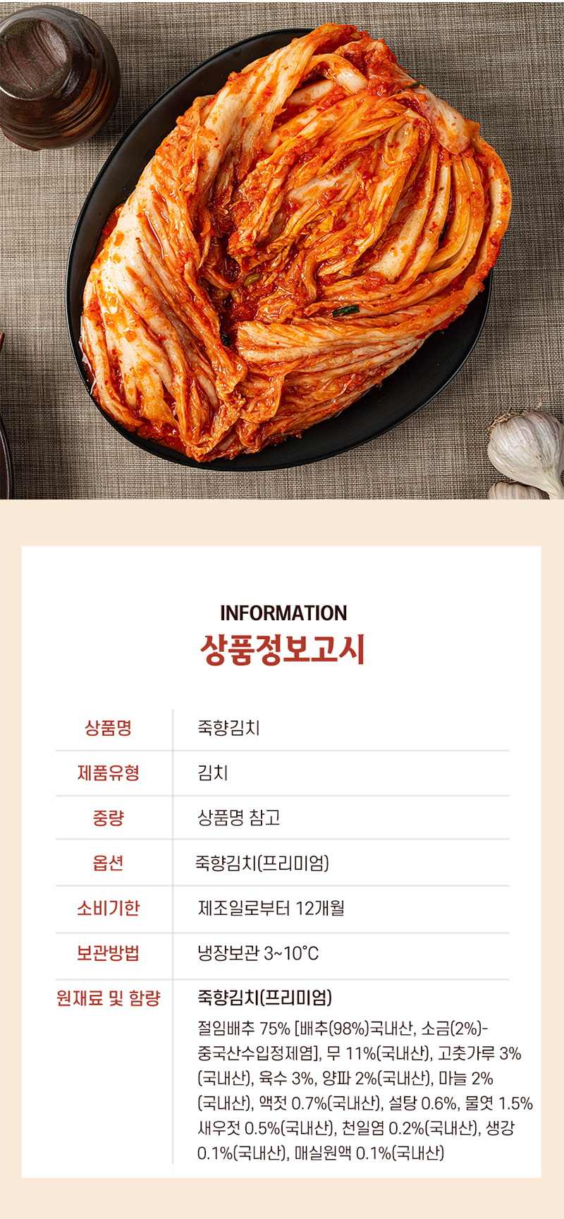 [죽향김치] HACCP인증 전라도김치 담양 죽향 프리미엄 포기김치 10kg