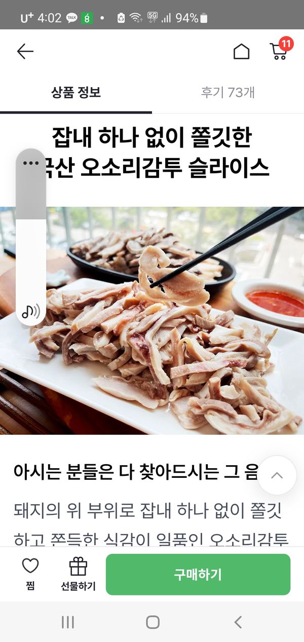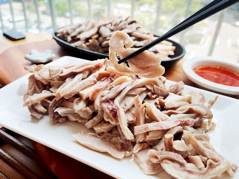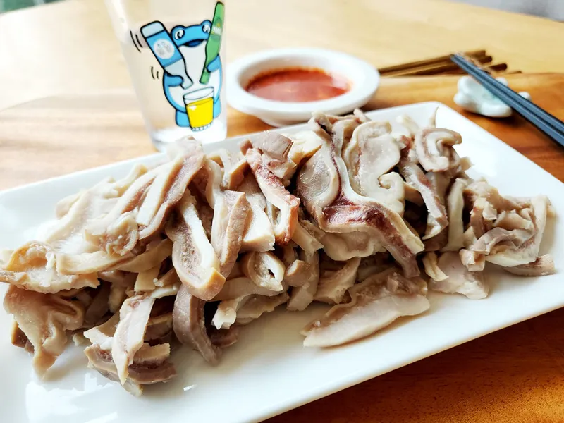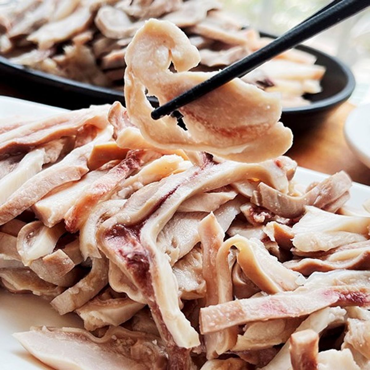 돼지의 위 부위로 잡내 하나 없이 쫄깃하고 쫀득한 식감이 일품인 오소리감투입니다. 돼지 한 마리당 1kg 정도밖에 안 나오는 특수부위입니다. 당일 도축한 국산 돼지를 사용해 잡내 걱정 없이 오소리감투 특유의 고소함을 제대로 즐길 수 있습니다.