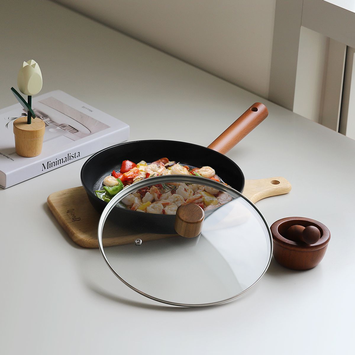느와르 블랙 IH 인덕션 겸용 우드핸들 국내생산 프라이팬 24cm (+유리뚜껑 포함)
