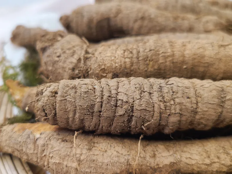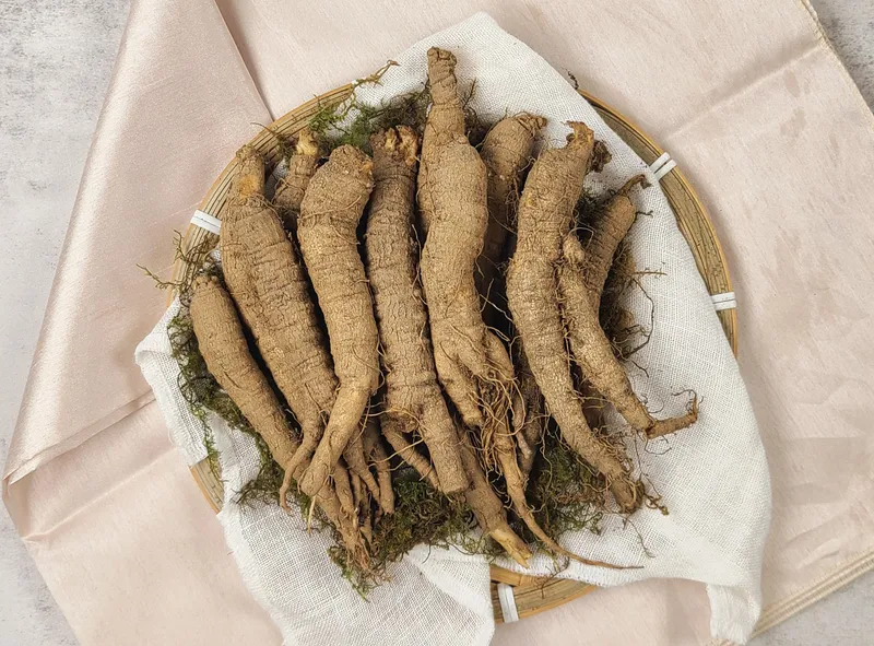 얇은 껍질에 잔뿌리가 적고 점액이 풍부한 약 5년근 더덕이에요.