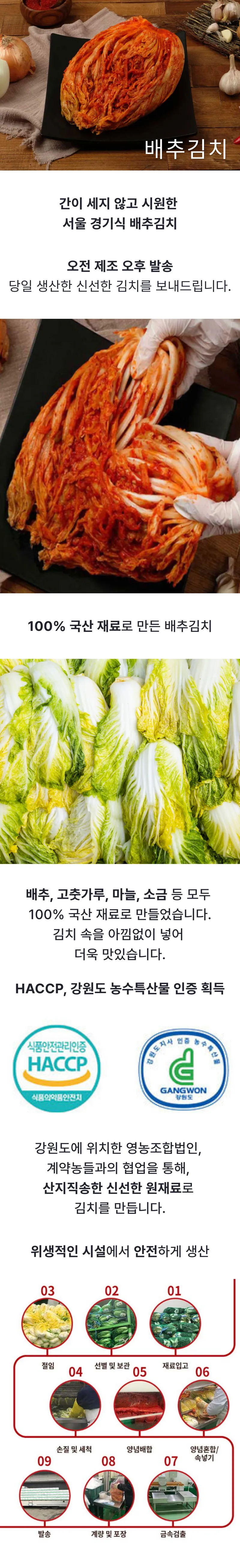 간이 세지 않은 서울경기식 배추김치입니다~ 당일 생산한 김치를 바로 보내드려 신선한 상태로 받아보실 수 있습니다 ^^