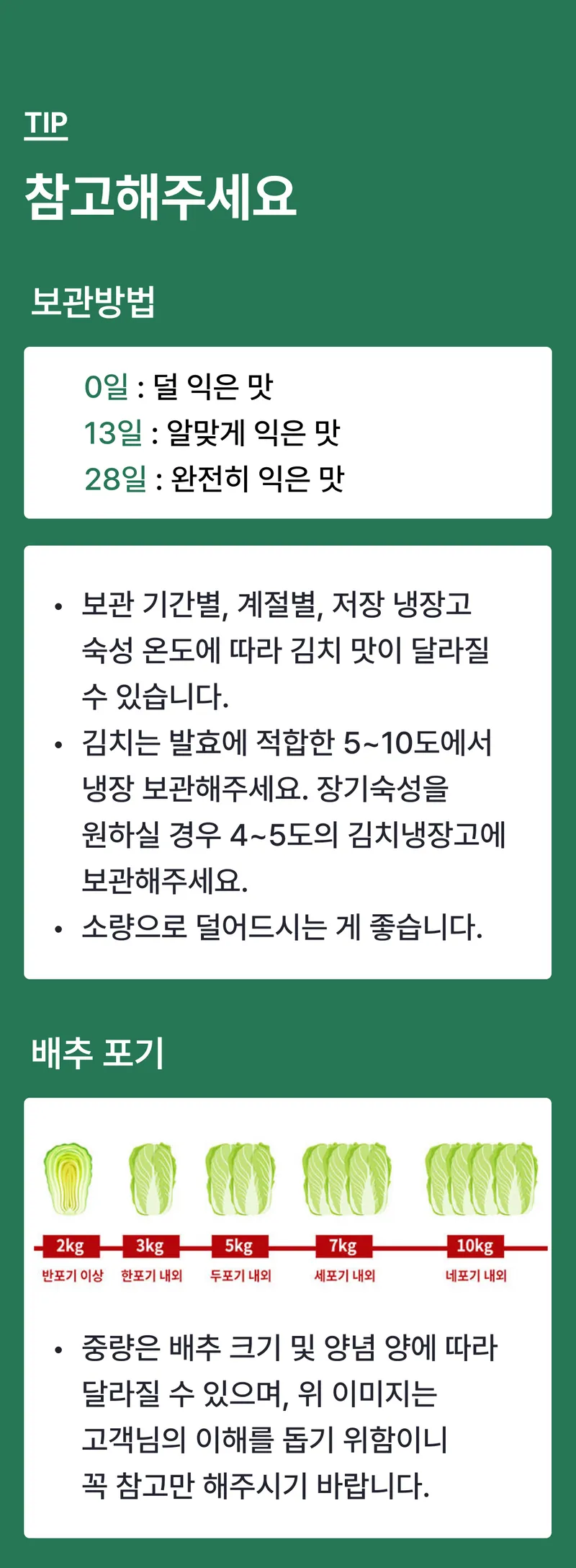 당일 생산한 김치를 출고해 드리지만 날씨가 더울 경우 간혹 김치가 익을 수 있는 점 양해 부탁드립니다.