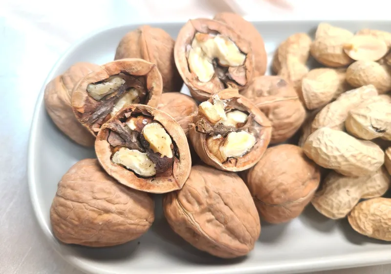 견과류 본연의 맛과 바삭한 식감을 즐길 수 있는 간식이에요. 땅콩과 호두로 구성된 견과류 세트로 건강하고 맛있는 간식을 즐길 수 있죠.