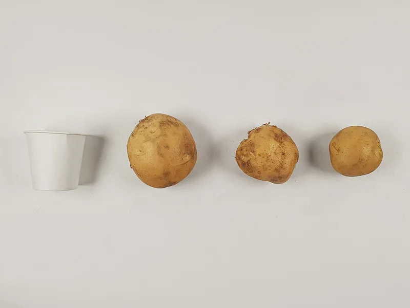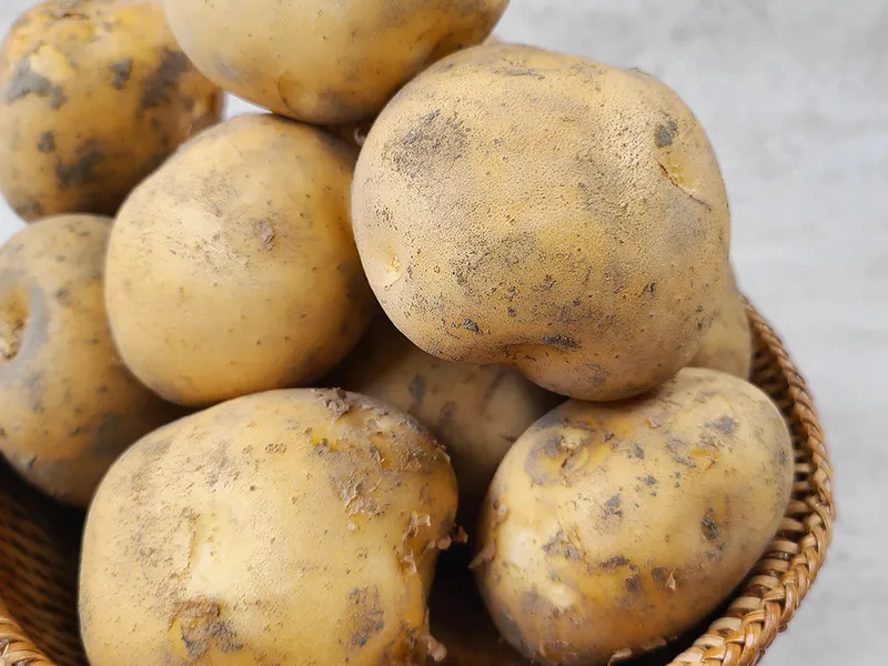 굵고 큼직한 감자입니다. 포근포근 부드러운 식감이 일품이죠. 수분감도 풍부하고 은은한 단맛이 느껴져 소금이나 설탕 없이 그냥 삶아 먹기만 해도 맛나요.